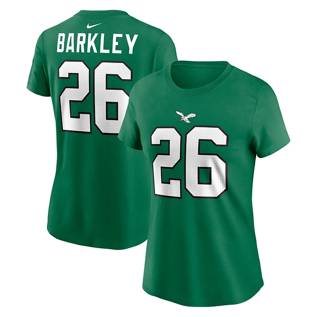T-shirt avec nom et numéro de joueur Nike Saquon Barkley Kelly Green Philadelphia Eagles pour femme