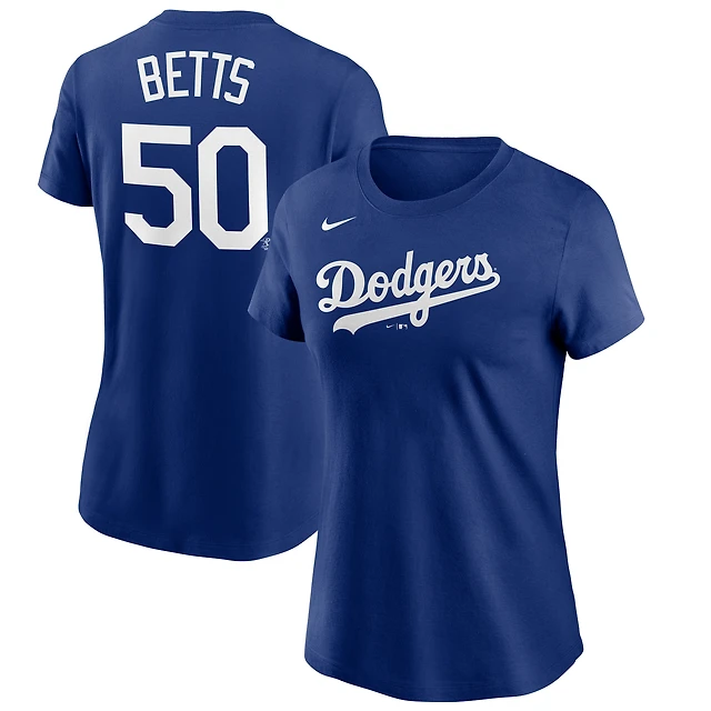 T-shirt avec nom et numéro Nike Mookie Betts Royal Los Angeles Dodgers pour femme