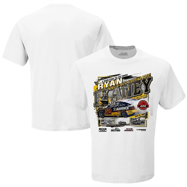 T-shirt blanc à damier pour homme, Ryan Blaney, vainqueur de la course Coke Zero Sugar 400 2025