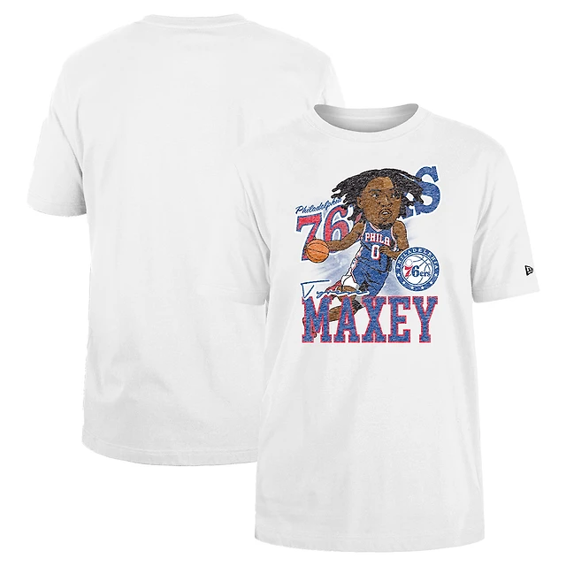 T-shirt blanc de joueur caricature des Philadelphia 76ers Tyrese Maxey New Era pour hommes