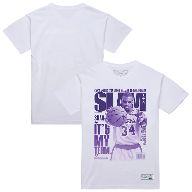 T-shirt blanc dégradé SLAM des Los Angeles Lakers de Mitchell & Ness Shaquille O'Neal pour homme
