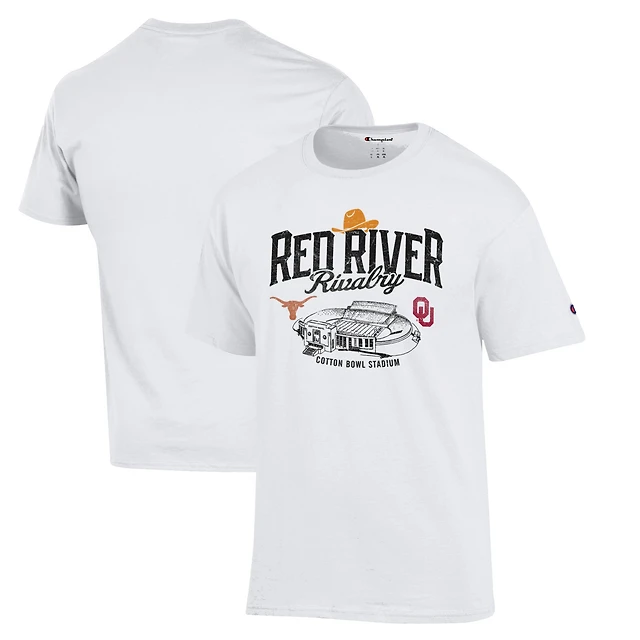 T-shirt blanc du champion masculin Texas Longhorns contre Oklahoma Sooners Red River Rivalry Stadium Match Up