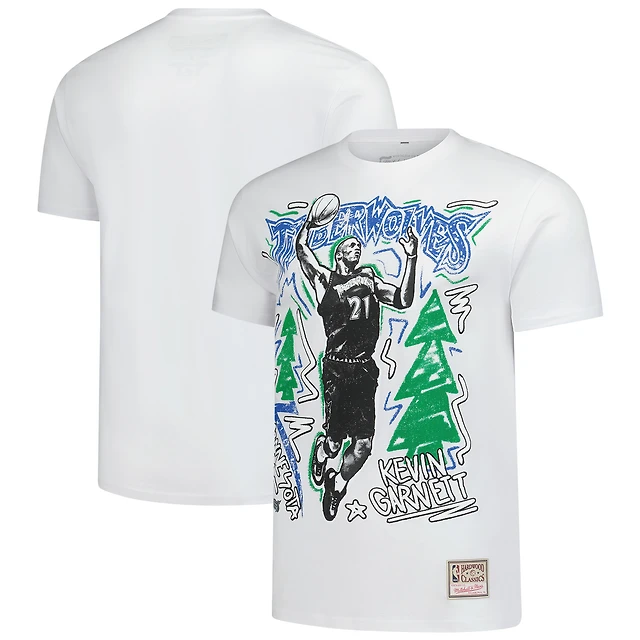 T-shirt blanc pour homme Mitchell & Ness Kevin Garnett des Minnesota Timberwolves Hardwood Classics Chalked Up