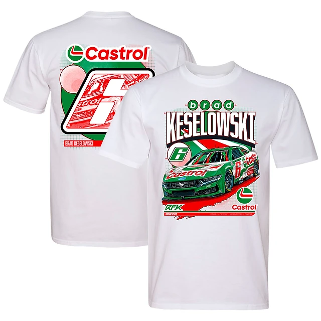 T-shirt blanc pour homme RFK Racing Brad Keselowski Castrol Car