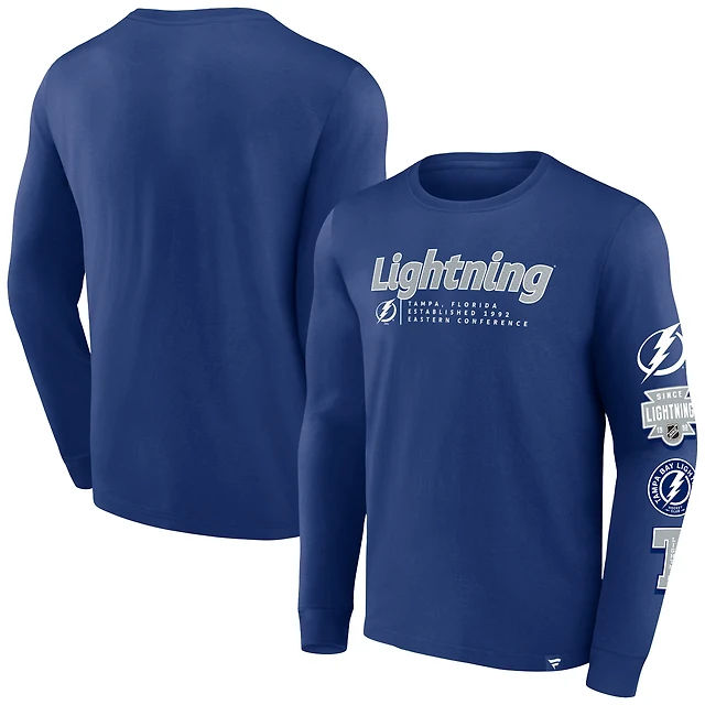 T-shirt bleu à manches longues Fanatics Tampa Bay Lightning Strike the Goal pour hommes