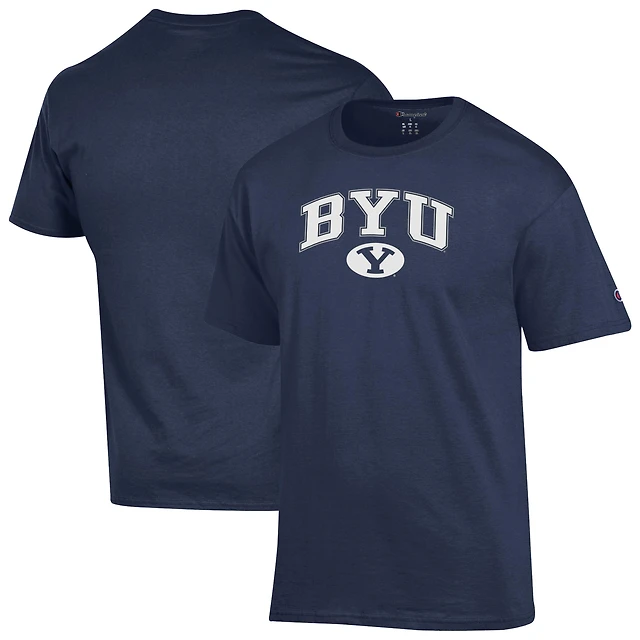 T-shirt bleu marine Champion pour homme avec logo Arch Over des BYU Cougars