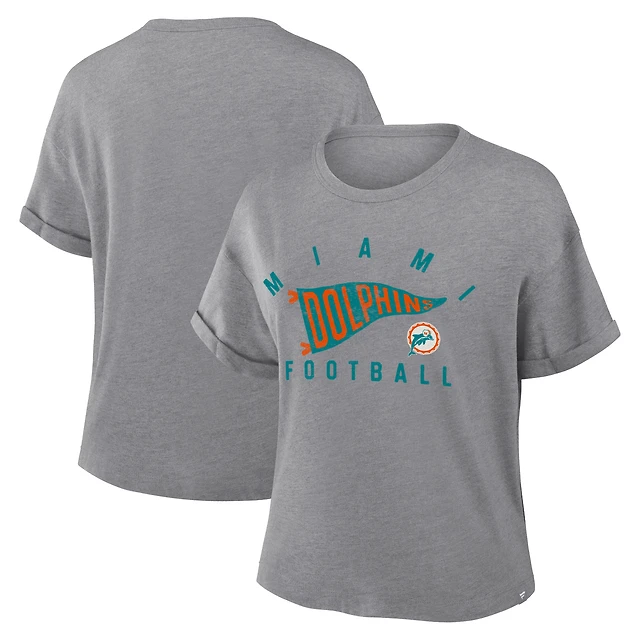T-shirt boxy tri-blend gris chiné Fanatics pour femme, hommage aux Dolphins de Miami, avec motif Pennant Wave
