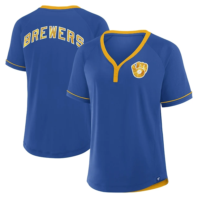 T-shirt col en V raglan Diva de la collection Cooperstown des Royal Milwaukee Brewers Fanatics pour femmes