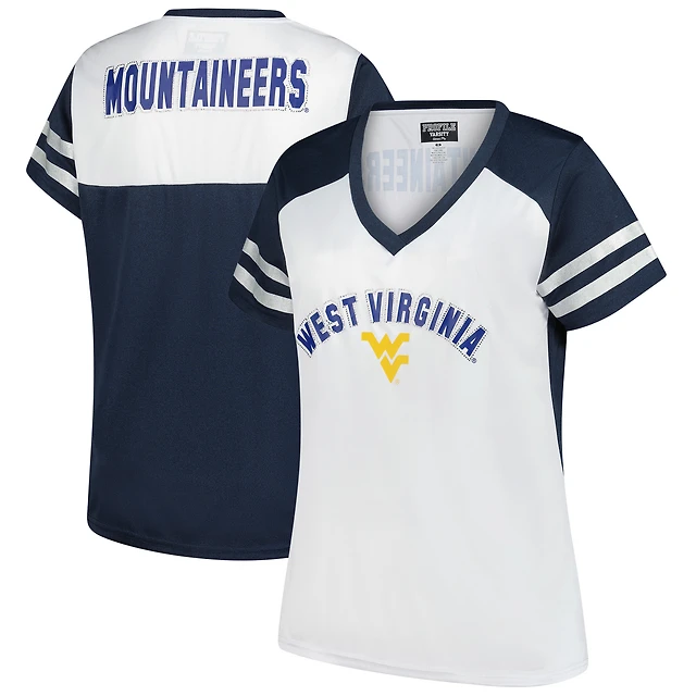 T-shirt col V à rayures et manches pailletées strass pour femme, blanc, style fanatique des West Virginia Mountaineers, grande taille