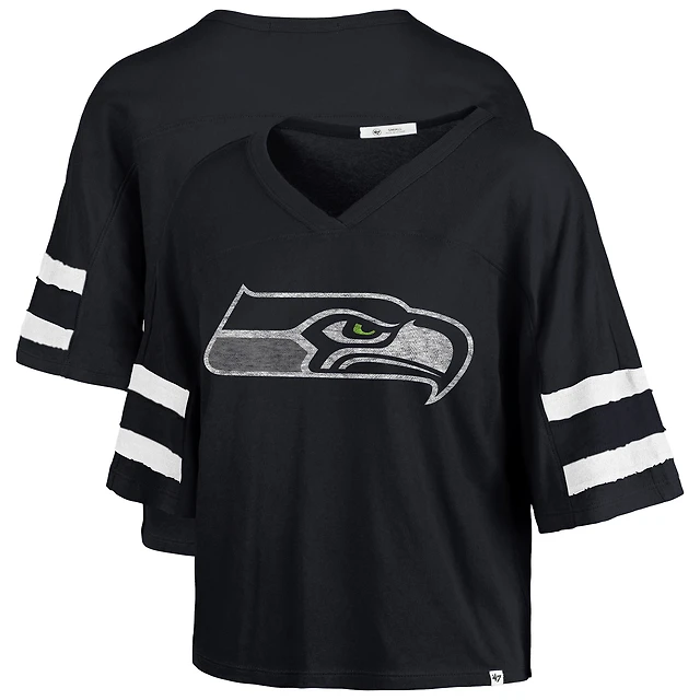 T-shirt court à col en V « 47 College Navy » pour femme des Seattle Seahawks Premier Scout