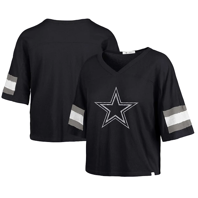 T-shirt court à col en V Double Header Scout des Cowboys de Dallas '47 bleu marine pour femmes
