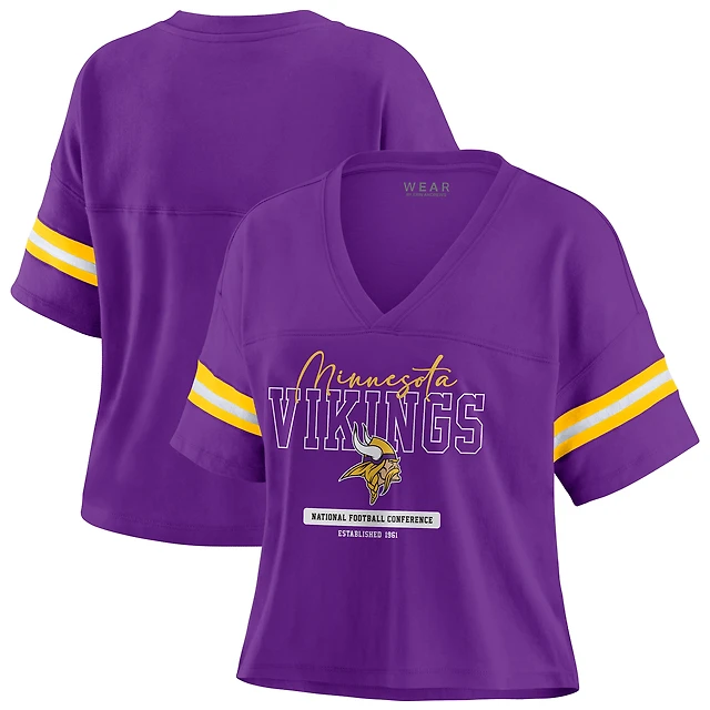 T-shirt court à col en V et blocs de couleurs violets pour femmes WEAR by Erin Andrews des Minnesota Vikings