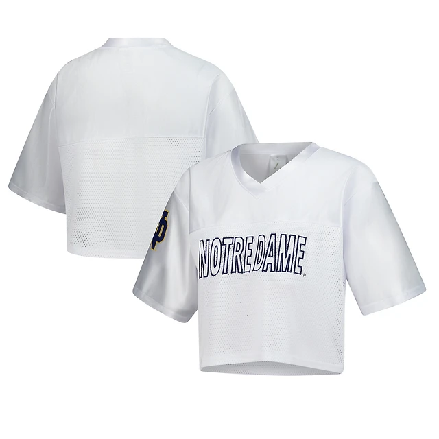 T-shirt court à col en V maille blanche ZooZatz pour femme, motif Fighting Irish de Notre Dame