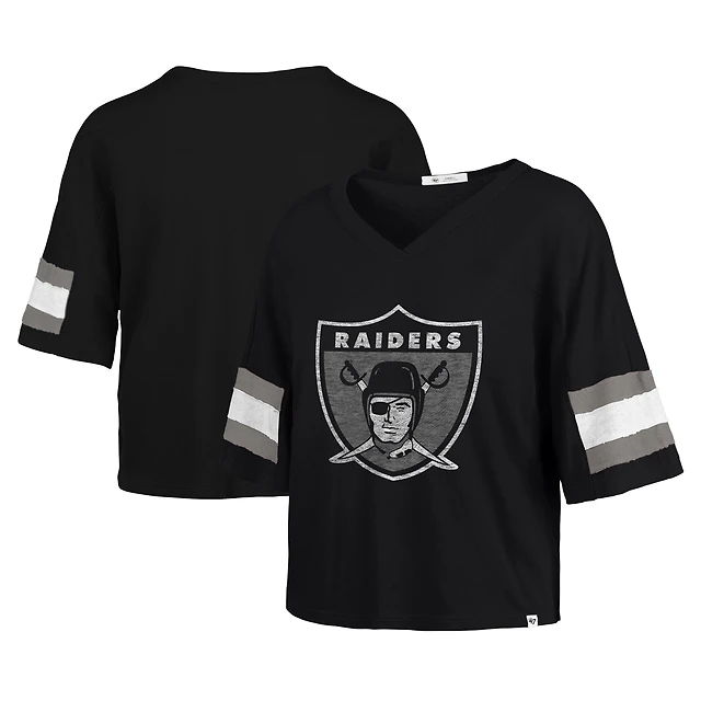 T-shirt court à col en V pour femme Las Vegas Raiders Double Header Scout '47 Black