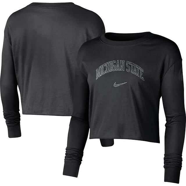 T-shirt court à manches longues et logo Michigan State Spartans 2-Hit Nike pour femme, noir