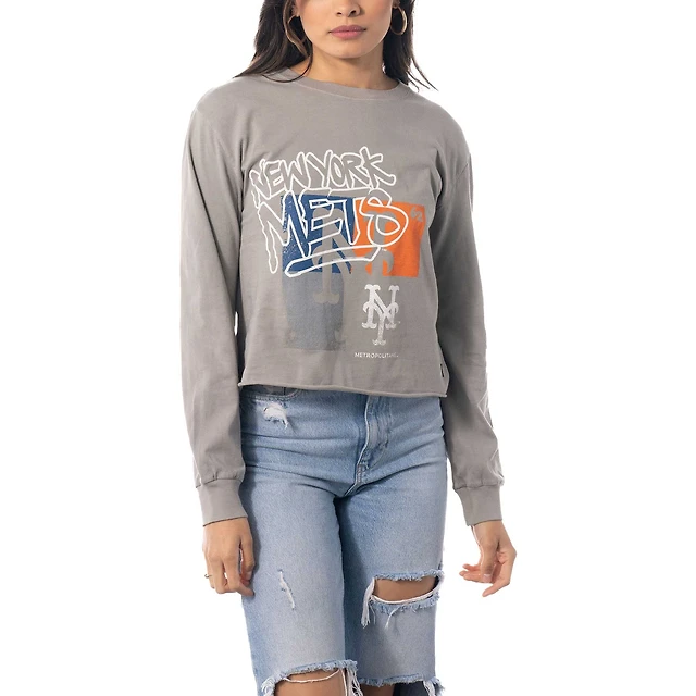 T-shirt court à manches longues pour femmes The Wild Collective, gris, New York Mets
