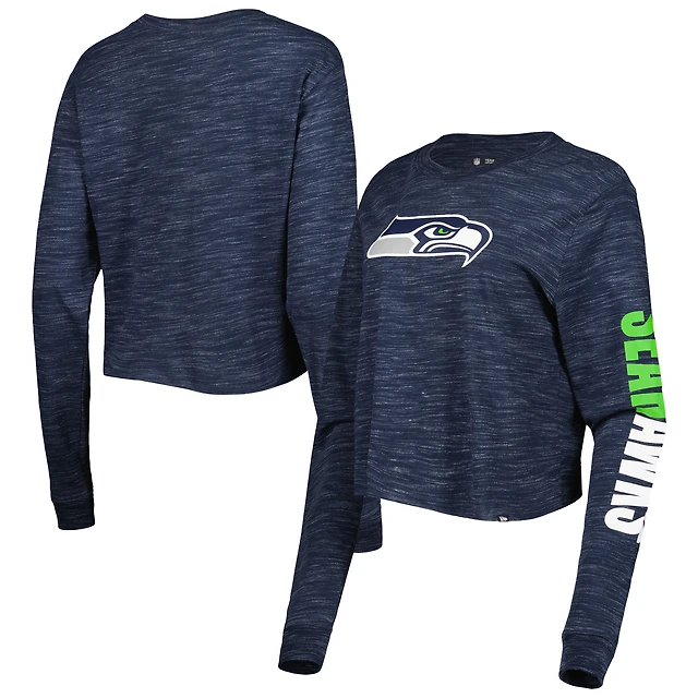 T-shirt court à manches longues Seattle Seahawks New Era College Navy pour femme