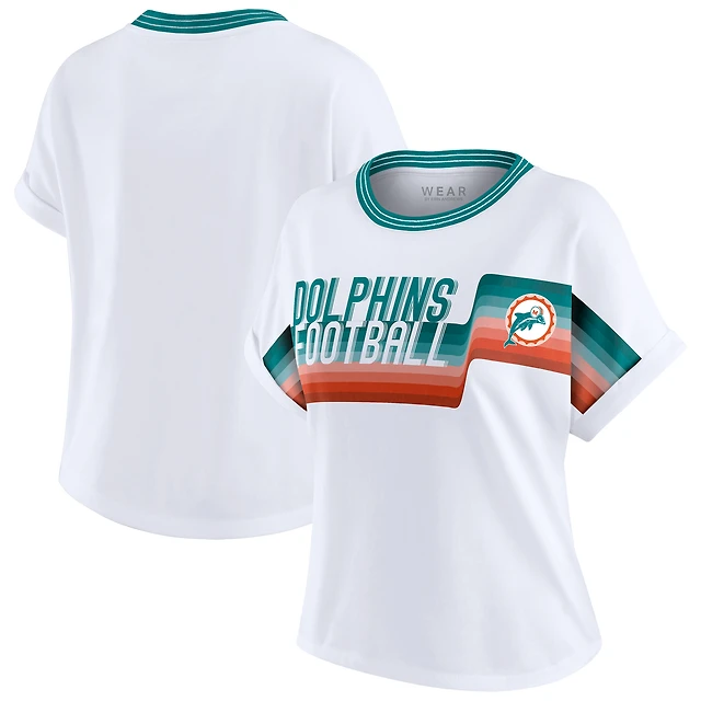 T-shirt court à rayures centrales blanc pour femme WEAR by Erin Andrews, motif Dolman, des Dolphins de Miami