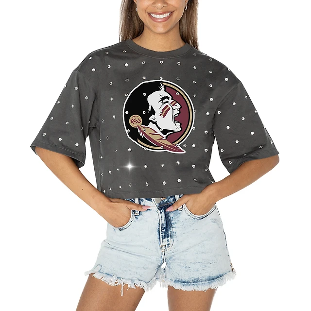T-shirt court à strass pour femme Gameday Couture gris Florida State Seminoles Go Time