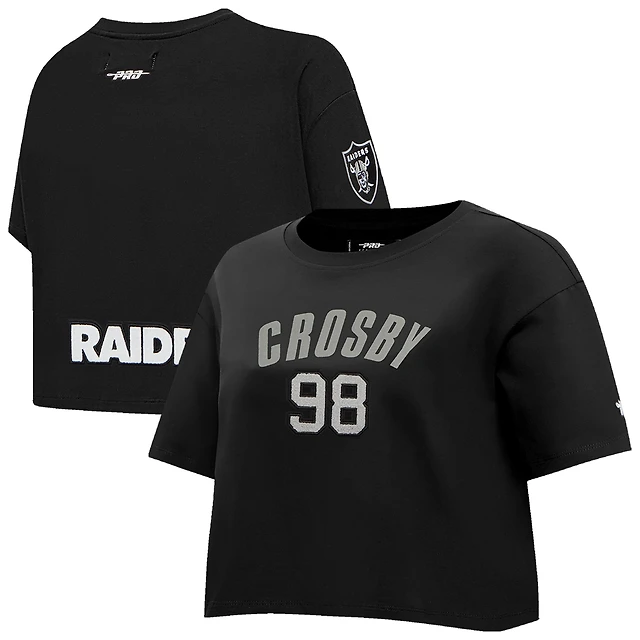 T-shirt court et boxy noir Pro Standard Maxx Crosby pour femme avec nom numéro de joueur des Las Vegas Raiders