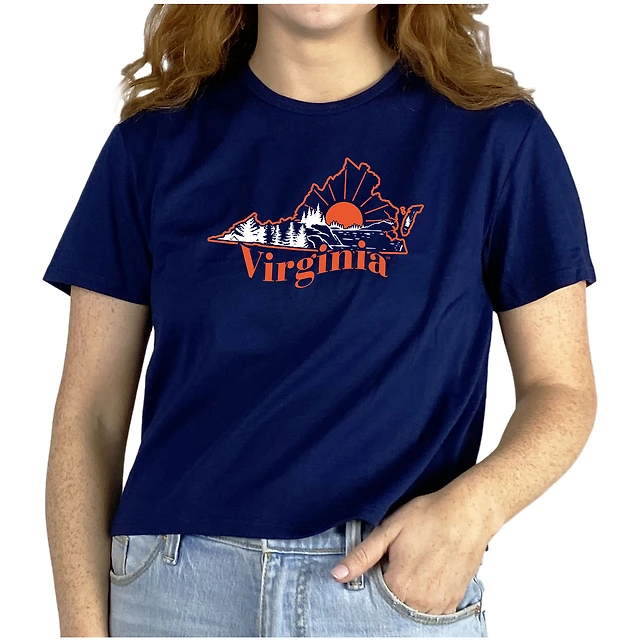 T-shirt court ZooZatz bleu marine pour femme, motif Virginia Cavaliers, Scenic State