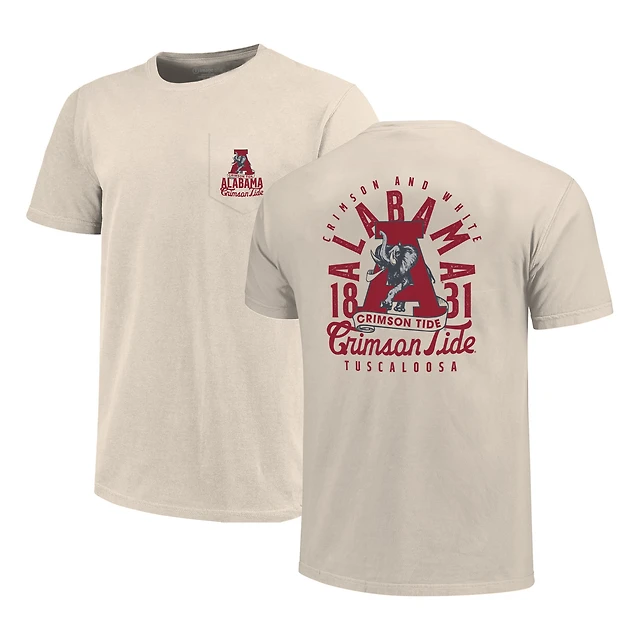 T-shirt crème pour homme avec poche zippée et motif mascotte Crimson Tide de l'Alabama