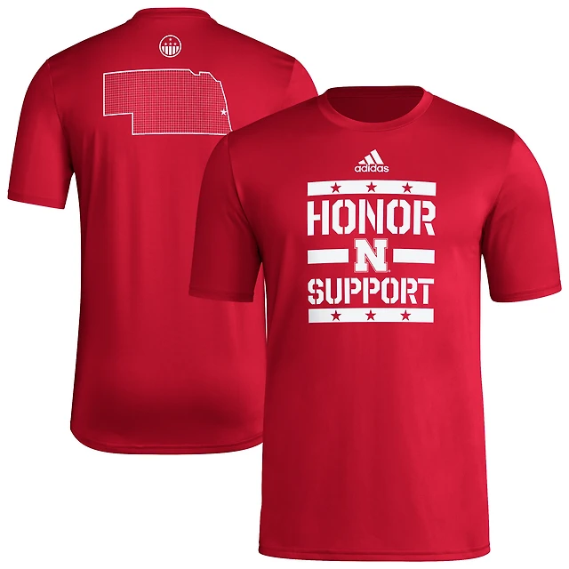 T-shirt d'avant-match adidas Scarlet Nebraska Huskers Honor & Support pour homme