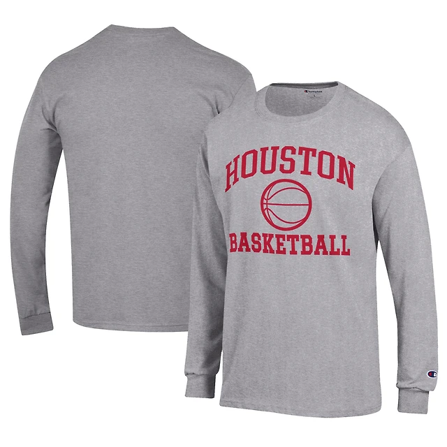 T-shirt de basket-ball à manches longues Champion Grey pour homme avec logo emblématique des Houston Cougars