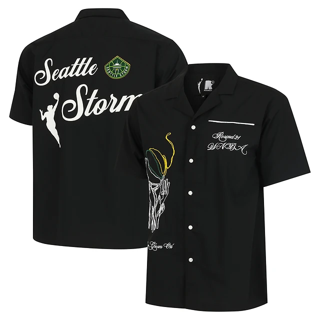 T-shirt de bowling unisexe noir à boutons ronds 21 Seattle Storm Lucky Strike