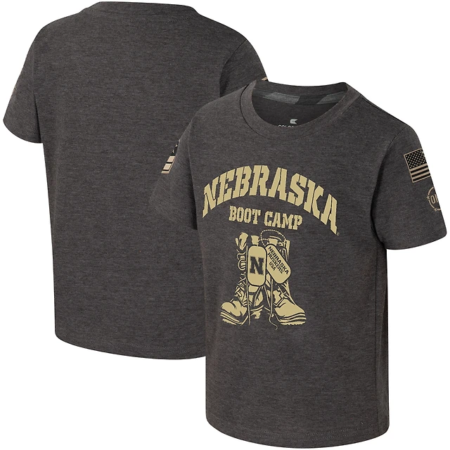 T-shirt de camp d'entraînement d'appréciation militaire pour tout-petits Colosseum Charcoal Nebraska Huskers OHT