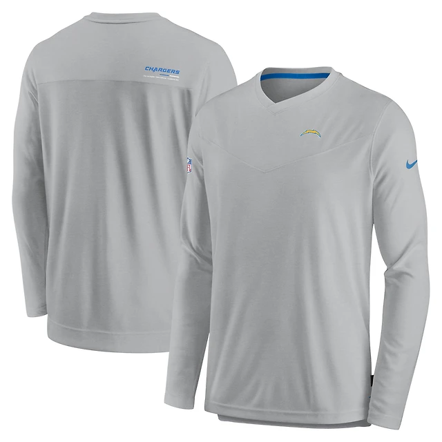 T-shirt de performance à manches longues et col en V Nike Los Angeles Chargers Sideline Coach Chevron Lock Up pour homme, gris