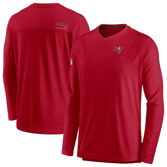 T-shirt de performance à manches longues et encolure en V pour homme Nike Tampa Bay Buccaneers Sideline Coach Chevron Lock Up rouge