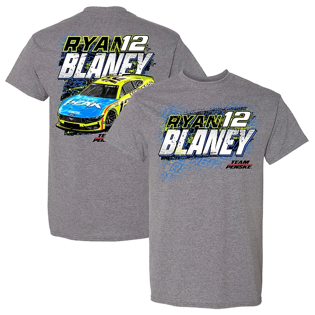 T-shirt de voiture Ryan Blaney l'équipe Penske pour hommes, gris chiné