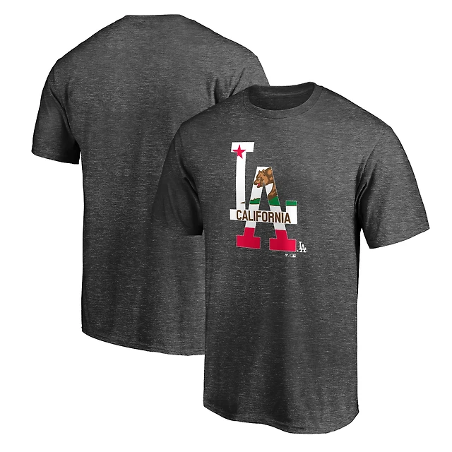 T-shirt drapeau de Californie Fanatics Heathered Charcoal pour hommes, Los Angeles Dodgers Big & Tall Hometown Collection