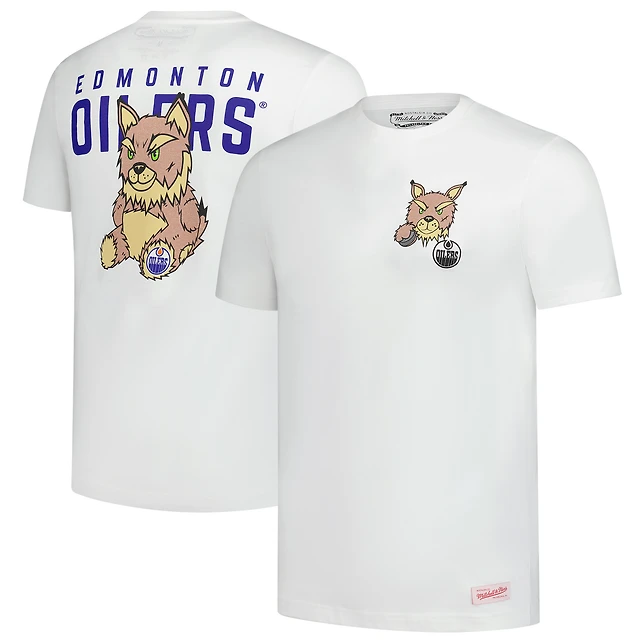 T-shirt en peluche blanc Mitchell & Ness pour homme avec logo des Oilers d'Edmonton