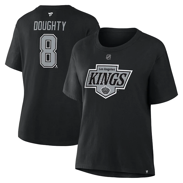 T-shirt Fanatics Drew Doughty noir authentique des Los Angeles Kings avec nom et numéro Stack pour femme