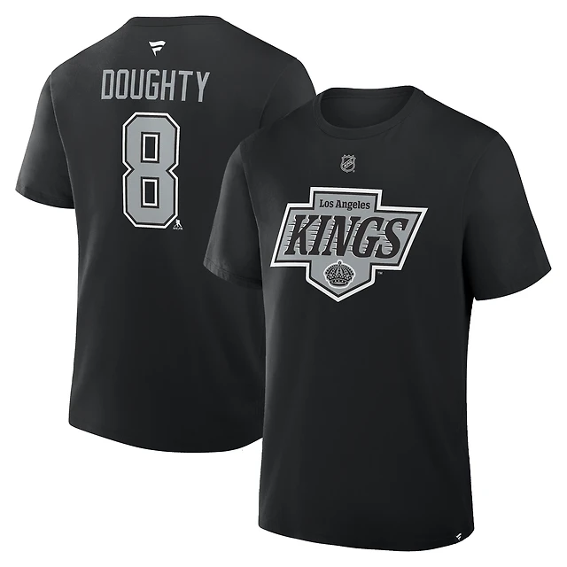 T-shirt Fanatics Drew Doughty pour homme, noir, authentique, avec nom et numéro Stack des Kings de Los Angeles