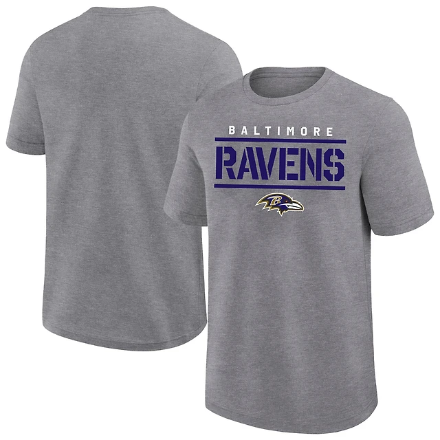 T-shirt Fanatics pour homme, gris chiné, grand format, des Ravens de Baltimore