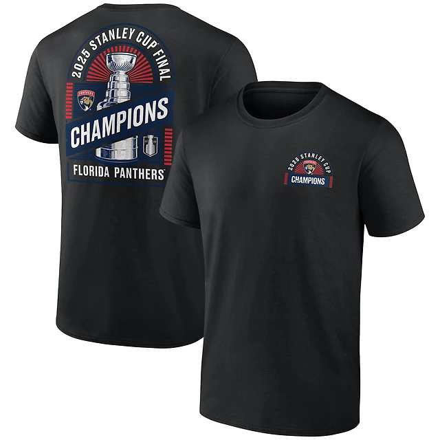T-shirt Fanatics pour homme, noir, champion de la Coupe Stanley 2025 des Panthers Floride