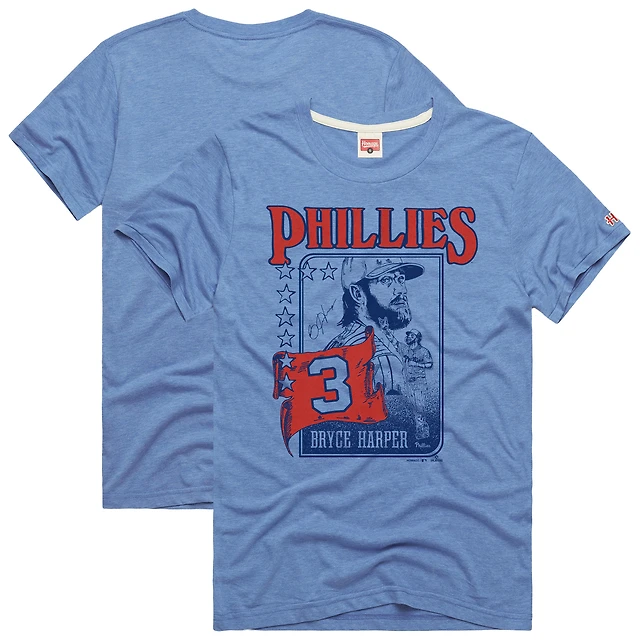 T-shirt graphique bleu clair pour homme, hommage à Bryce Harper, joueur des Phillies de Philadelphie