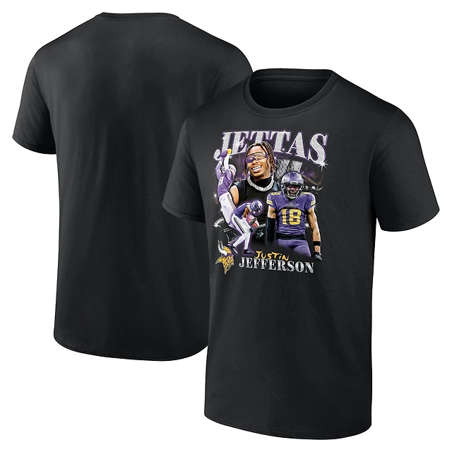 T-shirt graphique Fanatics Justin Jefferson pour hommes, joueur notoire des Minnesota Vikings, noir