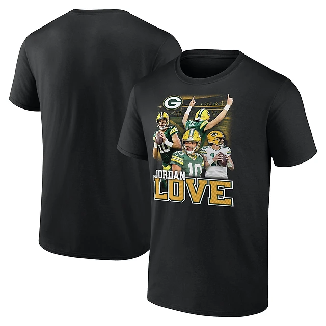 T-shirt graphique pour homme Fanatics Jordan Love Black Green Bay Packers Notorious Player