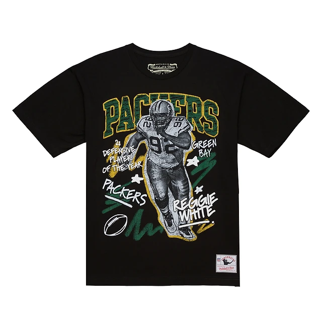 T-shirt graphique pour homme Mitchell & Ness Reggie blanc et noir des Green Bay Packers, joueur à la craie