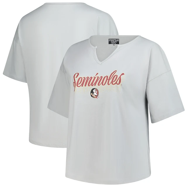 T-shirt gris à col cranté pour femme Fanatics, grande taille, motif Florida State Seminoles Winning Gear