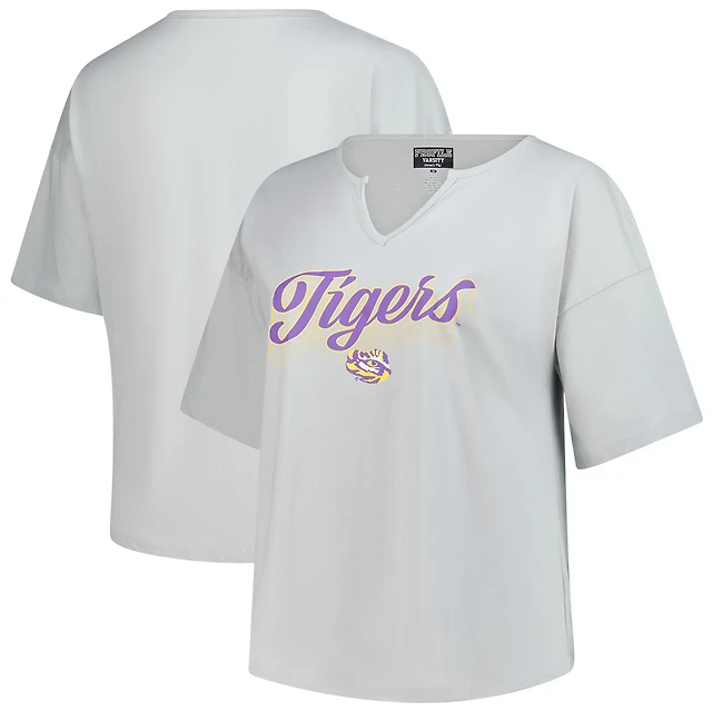 T-shirt gris à col cranté Winning Gear pour femme, taille plus, motif fanatique des Tigers de LSU