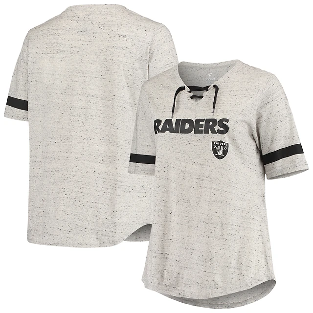 T-shirt gris chiné Las Vegas Raiders taille plus à col en V lacets pour femme