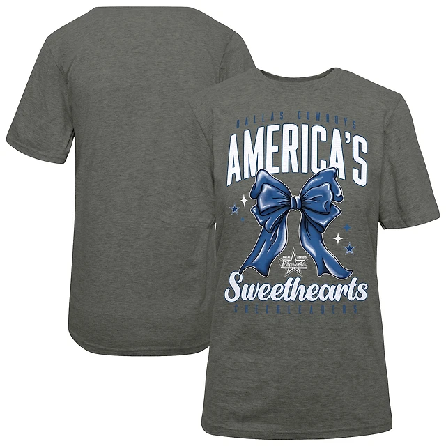 T-shirt gris pour femme avec nœud en cœur et motif pom-pom girls des Cowboys de Dallas