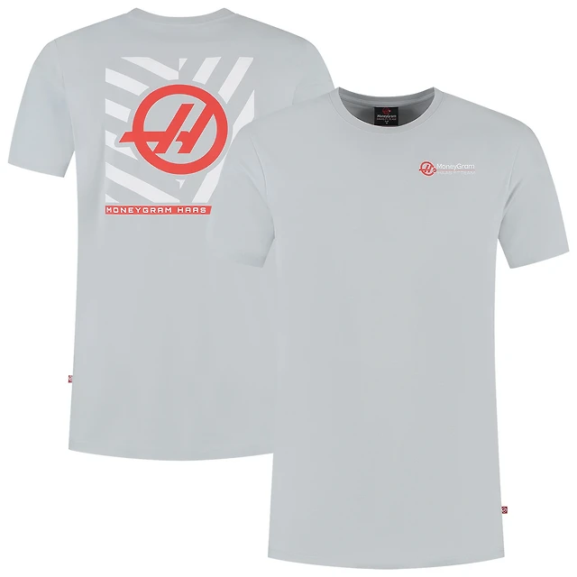 T-shirt gris pour homme Haas F1 Team 2025, motif fan, rayures rondes