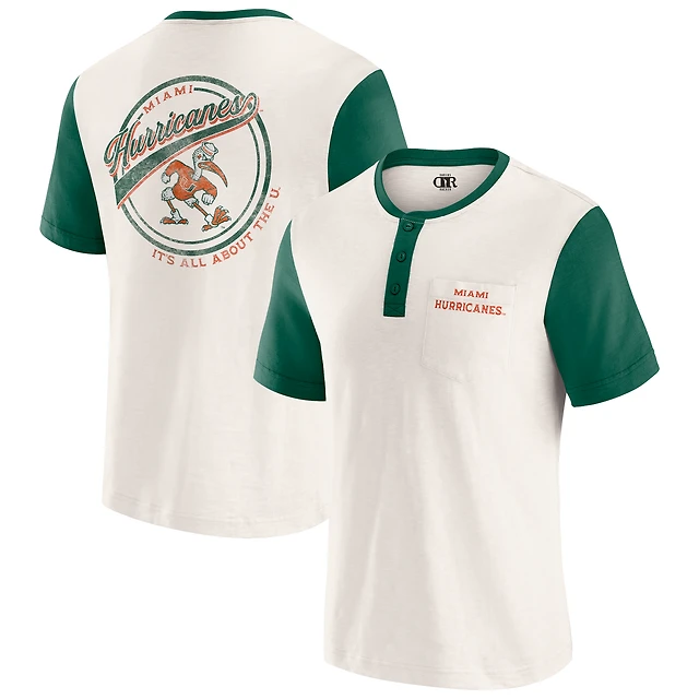 T-shirt Henley à blocs de couleurs crème/vert pour homme la collection Darius Rucker par Fanatics, Miami Hurricanes