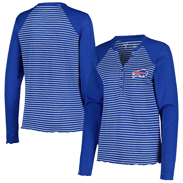 T-shirt Henley à manches longues gaufré Maverick Antigua Royal Buffalo Bills pour femme